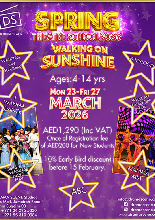 DRAMA SCENE has been operating since 2008 and is now the largest skill based performing arts school in the Middle East offer professional Acting, Musical Theatre & Public Speaking courses. We offer both creative and accredited tuition to children and teens as well as performing arts workshops and corporate training to adults. We believe that the many skills developed through performing arts, such as confidence, creativity, concentration, communication & co-operation are the most transferable life skills. We refer to these as the DRAMA SCENE C’s.